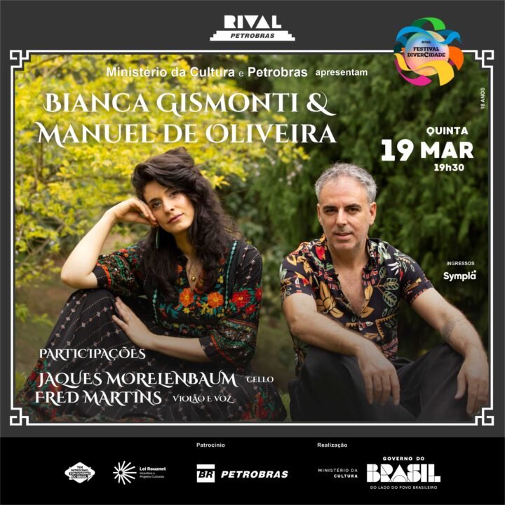 Bianca Gismonti e Manuel de Oliveira, compositores e instrumentistas de carreira internacional, vão apresentar um show que reúne a matriz ibérica e mediterrânea de Oliveira — de ancestral influência árabe — à escrita de Gismonti, na qual a tradição clássica e o lirismo impressionista se cruzam com o balanço polirrítmico brasileiro.