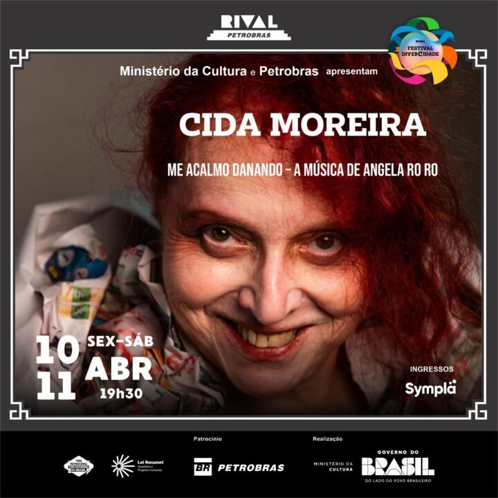 A cantora e pianista Cida Moreira, figura icônica do underground paulistano, apresenta o show “Me acalmo danando – A música de Angela Ro Ro”. Com formato de piano e voz, o espetáculo tem, no repertório, sucessos como “Fogueira”, “Compasso”, “Amor, meu grande amor”, “Tola foi você” e “A mim e a mais ninguém”.
