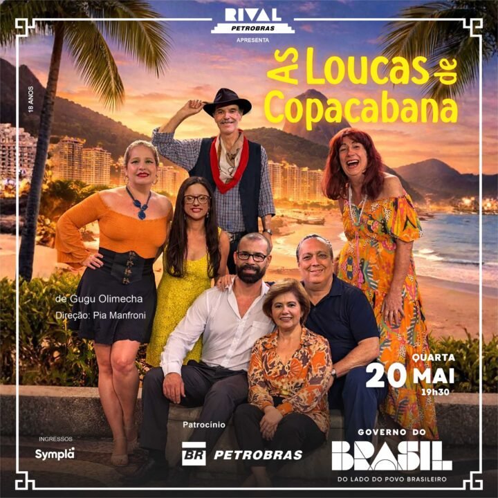 A comédia “As loucas de Copacabana” traz humor afiado e elenco consagrado: Narjara Turetta, Marcos Oliveira (Beiçola), Guilherme DelRio, Rose Scalco, Danton Lisboa, Andi Teixeira e Isabella Barros. Com direção de Pia Manfroni, a peça é do dramaturgo Gugu Olimecha, que foi roteirista de programas clássicos de humor como “Zorra Total”, “Sai de Baixo”, “Escolinha do Professor Raimundo” e “Os Trapalhões”