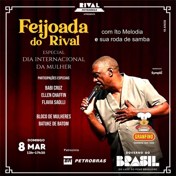 Vem aí mais uma edição da Feijoada do Rival! No Dia Internacional da Mulher, Ito Melodia vai homenagear grandes mulheres sambistas, como Dona Ivone Lara, Beth Carvalho, Alcione e Leci Brandão. Não vão faltar sambas memoráveis!