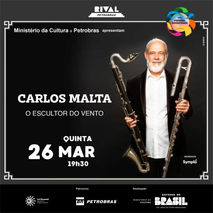 O multi-instrumentista, compositor e arranjador Carlos Malta comemora 50 anos de carreira relançando o clássico “O Escultor do Vento”, primeiro álbum solo que gravou e que foi lançado em 1997. Esta apresentação contará com a participação especial de Guinga, violonista que participou do trabalho original.