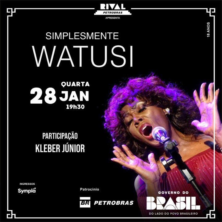 A incrível Watusi aprsenta “Simplesmente Watusi”, uma celebração de sua extraordinária carreira, que, ao longo de 57 anos, conquistou o coração de milhões de fãs no Brasil e no exterior. A artista conta histórias de sua vida e canta sucessos como “My Way”, “Pata Pata”, “La Bamba” e “Hit The Road Jack”, hits de Frank Sinatra, Miriam Makeba, Richie Vallens e Ray Charles, respectivamente. E vai ter participação do cantor Kleber Júnior, sobrinho de Watusi. Os dois juntos cantarão “Sá Marina” e “Saigon”.