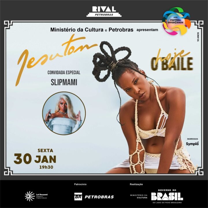 A cantora e compositora Jesuton sobe ao palco do Teatro Rival Petrobras para apresentar “Hoje – O baile”, lançando seu álbum. O espetáculo será no dia 30 de janeiro e mostra a fase mais pulsante, sensual e madura de sua carreira. No palco, Jesuton mistura afropop, percussão, dança, vozes e a força emocional que se tornou sua marca. E ainda vai contar com uma convidada muito especial: a rapper Slipmami.