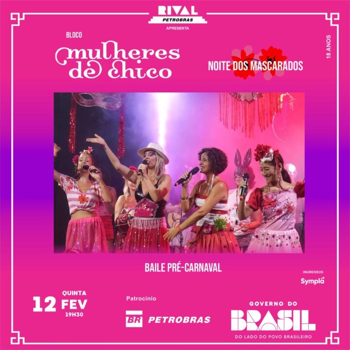 O pré-carnaval do Rio de Janeiro já tem data, lugar e brilho garantidos. No dia 12 de fevereiro, o palco do Teatro Rival Petrobras recebe a tradicional e animadíssima “Noite dos Mascarados” das Mulheres de Chico, um dos bailes de máscara mais queridos da cidade e que, em 2025, promete ser ainda mais especial.