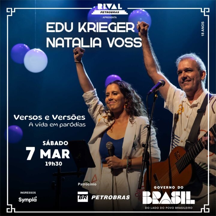 No dia 7 de março, Edu Krieger e Natalia Voss voltam ao Teatro Rival Petrobras, onde estrearam o show “Versos e versões: a vida em paródias”. Unindo música e humor, o espetáculo foi um sucesso instantâneo. As paródias de hits da MPB e do pop brasileiro caíram no gosto do público. E o bom é que o show se renova sempre. Afinal, assunto é o que não falta!