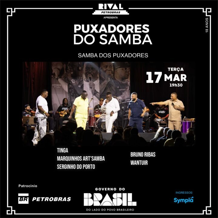 O clima de carnaval continua com o Samba dos Puxadores, reunindo cinco vozes consagradas do carnaval — Tinga (Vila Isabel), Marquinhos Art’Samba (Unidos da Tijuca), Serginho do Porto (Águia de Ouro e Estácio de Sá), Bruno Ribas (Unidos de Padre Miguel) e Wantuir (Porto da Pedra). O repertório inclui pagodes que marcaram os anos 1990, clássicos dos anos 2000 e históricos sambas-enredo.