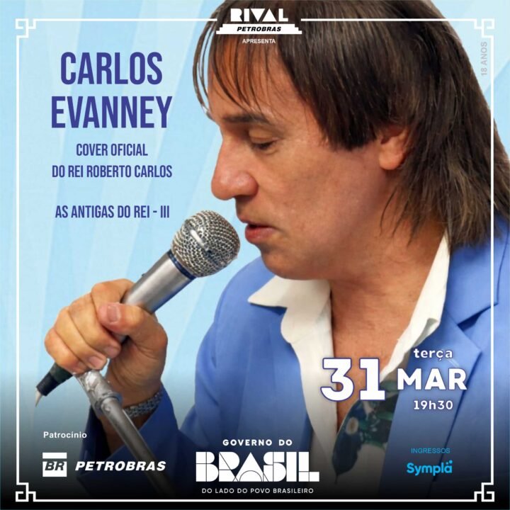Já é tradição no mês das mulheres! Em março, tem show do cantor Carlos Evanney, cover oficial de Roberto Carlos. No roteiro do show “As antigas do Rei III”, estão sucessos como “Por isso corro demais”, “À distância” e “Além do horizonte”.