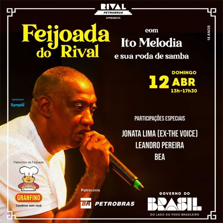 A tradicional Feijoada do Rival, mais uma vez traz Ito Melodi e sua roda de samba. Cinco vezes premiado com o Estandarte de Ouro como Melhor Puxador, Ito interpreta clássicos do samba, composições próprias – como “A cigana” e “Amor de pai” – e, claro, sambas-enredo de todos os tempos. E, como nos eventos anteriores, Ito Melodia vai contar com participações especiais.