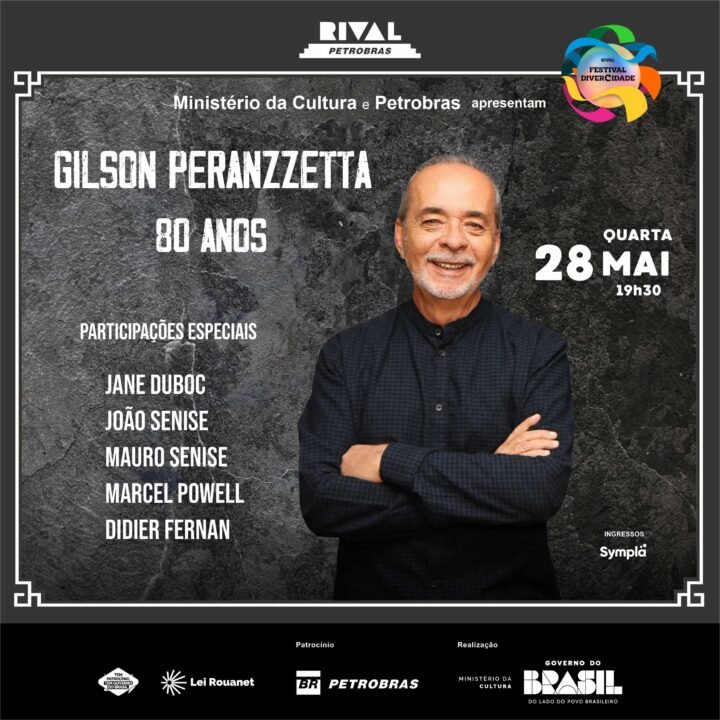 O maestro, pianista, compositor e arranjador Gilson Peranzzetta celebra 80 anos de vida e 70 anos de carreira, com participações dos cantores Jane Duboc e João Senise, do saxofonista e flautista Mauro Senise, do violoncelista Marcel Powell e do baixista Didier Fernan, além dos músicos que integram o trio de Peranzzetta: Alexandre Cavallo (baixo) e Ricardo Costa (bateria), parceiros que traduzem, no palco, décadas de amizade, excelência e criação artística.