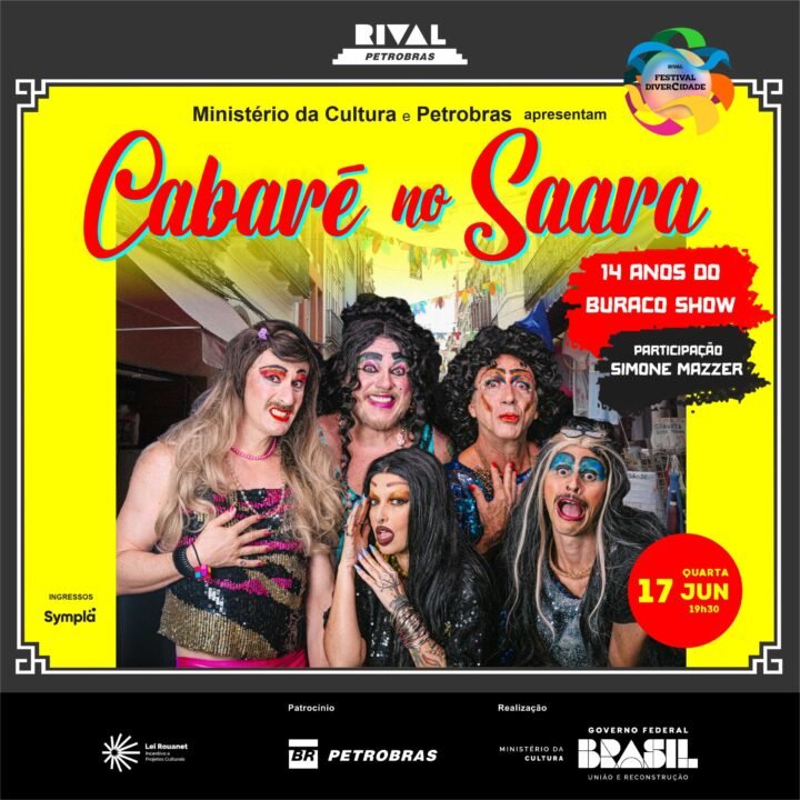 Espetáculo comemorativo dos 14 anos do coletivo Buraco Show, “Cabaré no Saara” foi inspirado na diversidade do comércio popular da chamada Saara, Sociedade de Amigos das Adjacências da Rua da Alfândega, no centro do Rio.